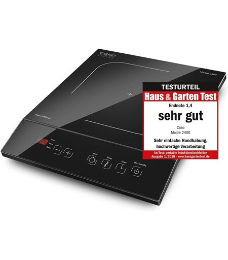 Caso Hamiltion-Maitre 2400 Plaque De Cuisson À Induction Mobile, Smartcontrol Sur 12 Niveaux, 60-240°C, Minuterie Jusqu'À 180 Min, Casseroles Jusqu'À 26Cm, 2400 Watt, Vitrocéramique