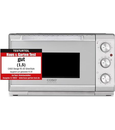 Compact et économe en énergie le four design CASO TO 20 SilverStyle est doté d'un Grande capacité de cuisson de 20 litres et offre 5 fonctions chaleur supérieure et inférieure, chaleur inférieure, chaleur haute, chaleur tournante, barbecue et tournebroche ...