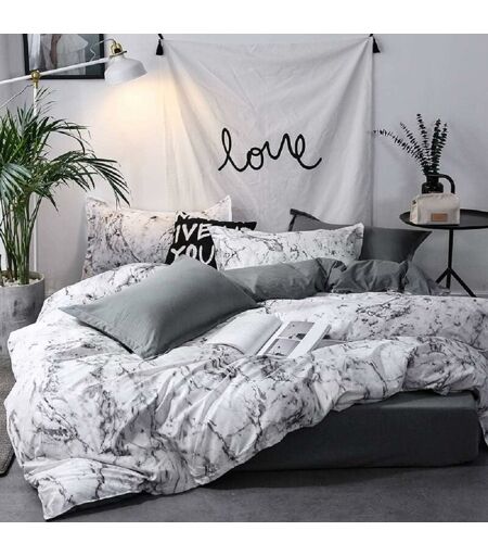 GROOFOO Parure de lit 3 pièces aspect marbre blanc motif marbre gris anthracite gris anthracite housse de couette lit double avec fermeture éclair imprimée