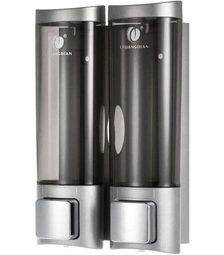 CHUANGDIAN Manual Hand Soap Dispenser Wall Mount Double Liquid Shampoo Shower Gel Dispenser Hand Cleanser Washroom Lotion Dispenser for Bathroom