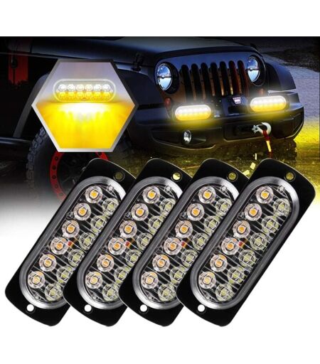 Chaque lampe est dotée de 12 ampoules à DEL de haute luminosité, d'une durée de vie de 500 000 heures, d'un grand angle de visibilité et d'un stroboscope à haute intensité. Conception ultra-mince imperméable à l'eau, objectif en alliage d'aluminium de haute qualité, anti-collision, anti-poussière, anti-éclaboussures / non polluant, pas de bruit, pas d'interférence électronique. Meilleure dissipation de chaleur et possibilités d'installation illimitées. Très durable et pratique. 18 motifs clignotants, Rappel du dernier motif en mémoire.Plus visibles et évidents. Universel pour 12-24V toutes les voitures, VUS, camionnettes, motos, fourgonnettes, remorques, bateaux, caravanes, jeeps, ect. Facile à installer, connectez d'abord le fil noir et le fil jaune au feu stop pour inverser le feu, puis éteignez la voiture et connectez le rouge au positif et le noir au négatif à nouveau (et le toucher jaune en négatif pour changer de clignotement) ...