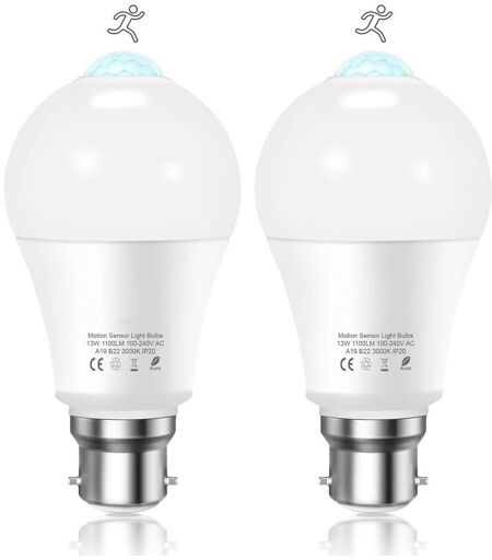 JALLERIA Mascot Ampoule Detecteur de Mouvement B22 Baïonnette led, 12W, 1020lm, Blanc Froid 6000 k, cir 85, étanches IP42 à économie d'énergie, non dimmable,