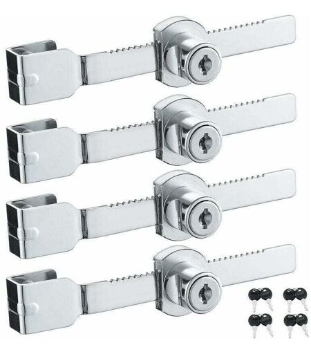 LABLANC Lot de 4 verrous de porte coulissante en verre avec finition chromée, clés identiques,petites, thsinde