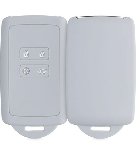 JALLERIA Accessoire clé de voiture compatible avec Renault Smart Key 4 boutons - Housse en silicone souple avec embout porte-clés - Gris Clair