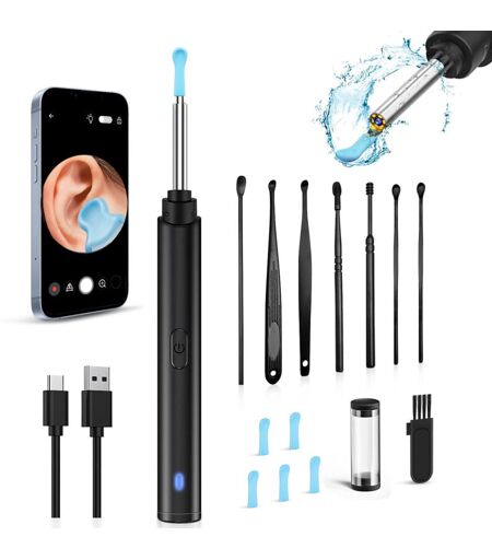 Jalleria - Otoscope Oreille, Camera Oreille 1296P hd Kit Camera Oreille d'élimination du cérumen avec 6 lumières led, outil de nettoyage d'oreille de