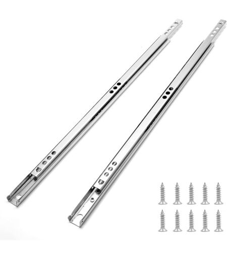 Contenu de l'emballage : 2 glissières de tiroir de 30 cm (12 po), vis de montage incluses. Veuillez vérifier le type et les dimensions avant l'achat. Matériau de qualité supérieure : Les rails de tiroir sont fabriqués en acier laminé à froid de haute qualité, avec une finition zinguée pour une résistance à la rouille, une dureté et une douceur optimales. Conception innovante : 2 sections, avec glissières à roulement à billes dans la rainure de positionnement des billes, assurant un glissement stable et sans déraillage, avec plusieurs positions de trous fixes pour une installation et un réglage faciles. Application : Les billes en acier massif assurent un mouvement silencieux à l'ouverture et à la fermeture, créant un environnement silencieux et confortable pour votre famille. Convient aux tiroirs de chambre, de cuisine, de bureau, de chevet, etc. ...