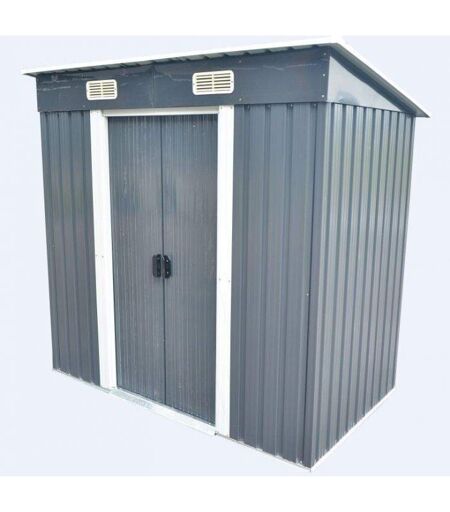 Grâce à cet abri de jardin en métal à toit plat, vous pourrez ranger tous vos outils et machines destinés au jardin. Vous ne devrez plus faire des aller-retours avec tous vos outils lors de l'entretien de votre pelouse et parterre. Cet abri possède 2 orifices d'air assurrant une bonne ventilation. La double porte d'entrée permet le passage de machines plus volumineuses. Il est fabriqué en acier galvanisé avec une finition enduite de zinc lui conférant une grande durée de vie ainsi qu'une bonne solidité. Le kit comprend également un cadre de sol en acier pour augmenter la stabilité de la structure. Ce produit est livré en kit. Les pièces sont pré-decoupées et pré-percées pour un assemblage rapide et facile. ; Données techniques: Matière : acier galvanisé Couleur: Blanc et anthracite Epaisseur des tôles: 0.25mm de zinc Epaisseur des renforts:0.6mm Hauteur de la porte: 154cm Hauteur totale: 181cm Dimension du produit : Hauteur: 181cm, profondeur: 121cm, largeur: 194cm Poids : 47KG Dimensions des colis: 153*54*8 (26KG) + 129*50*13 (21KG) Aux normes européennes CE et SGS ...