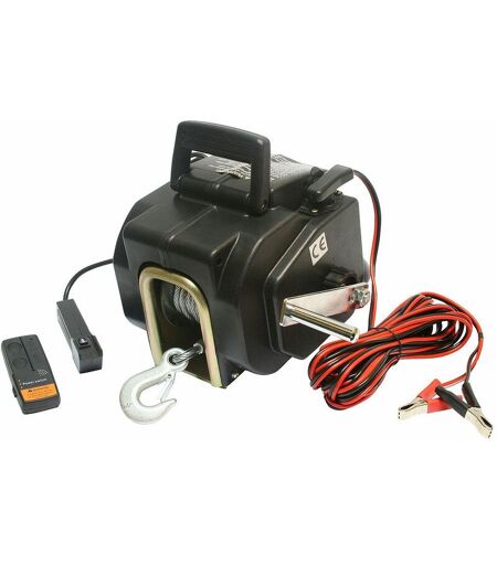 DESCRIPTION GÉNÉRALE Treuil électrique 12V pour tirer une charge en ligne de maximum 1587KG (3500 livres). Il convient parfaitement au montage sur quad, remorque, bateau. Grâce à sa poignée incorporée, il est facile à transporter d'un véhicule à un autre. Avantages : Câble de treuil très long, 10.5m et plus large qu'un modèle normal (5.4mm à la place de 4mm). Contenu : 1 Treuil électrique 12V Boîtier télécommande bouton poussoir Télécommande à distance Support de fixation pour boule d'attelage Set de câbles et de montage SPÉCIFICATIONS TECHNIQUES Traction en ligne max: 1587Kg (ligne simple) Puissance: 400W Transmission: 664:1 Traction: roulage: 11000Lbs / 4990Kg Traction: immergée: 9900 Lbs / 4490Kg Vitesse théorique: 1.8m / min sans charge Diamètre et longueur du câble: 5.4mm x 10.5m Largeur du tambour: 8.5cm Démultiplication manuelle: 7 tours de manivelle pour 1 tour de rouleau Dimensions: 24 x 29 x 20cm Dimensions du carton: 42 x 29 x 28cm Dimensions de la platine de montage: ...