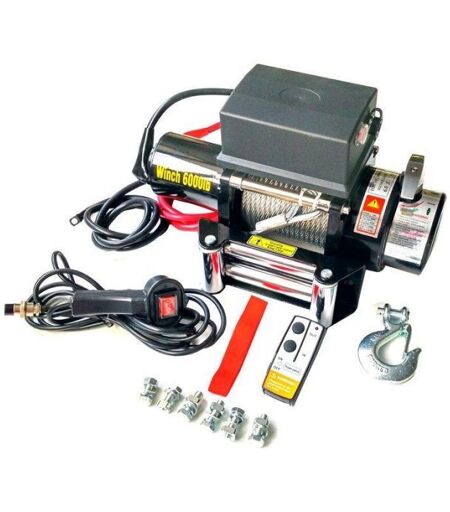Treuil électrique HAUTE CHARGE 12V pour tirer une charge en ligne de maximum 2721KG (6000 livres). Grâce à ce treuil vous pourrez tirer des charges allant jusqu'à 2721Kg, que ce soit un autre véhicule ou pour vous-même si vous êtes dans une situation difficile, il vous rendra de nombreux services. Ce treuil convient parfaitement au montage sur camionnettes de dépannage, véhicules tout terrain, jeep, 4x4 et +.  Rien; ne résistera à cette machine! Notre produit pourra être piloté via sa télécommande filaire, ainsi que par sa télécommande à distance. Le câble est très long, soit 20 mètres et ultra-résistant. Son diamètre est de 7.2mm. Contenu: ; 1 Treuil; électrique 12V pour tirer une charge en ligne de maximum 2721 KG (6000 livres). télécommande filaire télécommande sans fil galet de guidage set de câbles Caractéristiques Techniques :; Traction en ligne max: 2721Kg (ligne simple) Transmission: 230.4:1 Moteur: Aimant permanent, 3.3KW / 4.5PS (12v) Diamètre et longueur du cable: 7.2mm x 20m Taille du tambour: 64mm (diamètre) x 137mm (Longueur) Dimensions: 427 x 160 x 214mm Boulon de fixation: 166.5mmx114.3mm Dimensions du carton: 50 x 34 x 25cm Poids: 27Kg Frein automatique dans le tambour Télécommande filaire, longueur de 3.7m Engrenage 3 étapes galet de guidage 4 directions ; Consommation Charge Kilo 0 907 1814 2721 ; Vitesse m/min 6.8 3.5 3.6 2.64 Moteur Amp 60 124 180 220 ; ; COMMENT CHOISIR SON TREUIL ? Il est toujours recommandé de surdimensionner de 50 % le choix du treuil par rapport au poids théorique du véhicule ou poids à tirer. Exemple : pour un bateau de 400 kg, utiliser un treuil de capacité 600 kg minimum Pourquoi ? Parce que la capacité du treuil donnée par les fabricants est toujours pour la première rangée du câble enroulée autour de l'axe du tambour, pour un treuillage; avec le câble en position parfaitement horizontale et pour une charge roulante (une voiture par exemple...). Cette capacité peut être doublée en utilisant un moufle (poulie). Mais l'utilisation d'un treuil comporte d'autres critères importants : le treuillage se fait généralement sur une pente (plage, rampe portuaire de mise à l'eau, remorque, dépanneuse...) : la position du câble n'est donc jamais à l'horizontale et la masse qu'il est possible de tirer diminue d'autant. Si l'objet à tirer ne roule pas mais est posé au sol : force de déplacement nettement supérieure et donc la masse qu'il est possible de tirer diminue également. En conclusion, la charge maximale que le treuil peut tirer est directement proportionnelle à 2 facteurs : l'angle d'inclinaison du câble par rapport à l'horizontale les forces de frottement ...