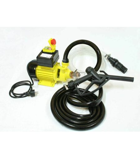 Pompe à Fuel Gasoil mobile - 40l/min / 600W Contenu Pistolet en plastique à blocage manuel Pompe à fuel Crépine d'aspiration 4 colliers de serrage 1 connecteur pour tuyau d'entrée Le tuyau d'aspiration de 2,5m Tuyau pour pistolet de 3m Description Pompe à gasoil 230V avec tuyau et pistolet de pompage pour un service immédiat. La puissance du moteur est de 600W, la pompe atteint alors une vitesse de 2800t/min et un débit de 2400l/h max. Pompe compacte maniable et puissante. Cette pompe ne peut être utilisée que pour l'extraction d'huile ou fuel. DANGER d'explosion si utilisation avec de l'essence. Caractéristiques Techniques Puissance: 600W Alimentation: 230V / 50Hz Vitesse: 2800t/min Débit max: 40 l/min Dimensions de la pompe: 26 x 12,5 x 23.5cm Hauteur d'aspiration maximum tout compris 2mètres . Diamètre de la crépine d'aspiration 32mm. Longueur du cable d'alimentation: 1.2m Hauteur de refoulement max: 36m Raccord de tuyau: 2 x 1'' (25.4mm) Couleur: jaune et noir Poids: 4.90Kg ...