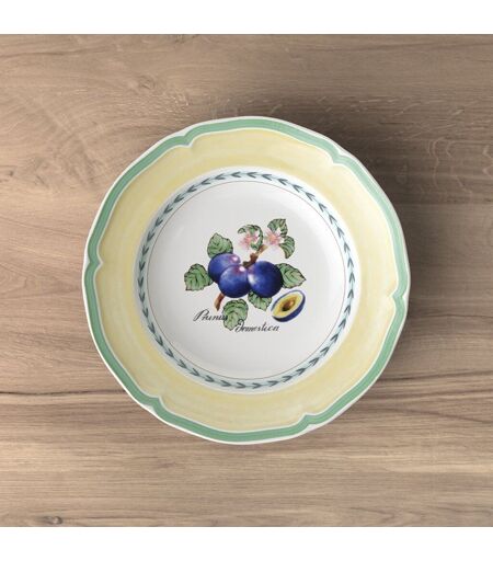 Avec ses éléments champêtres traditionnels aux couleurs chaleureuses, French Garden crée un somptueux jardin fruitier sur la table. Ses différents décors estivaux à la beauté intemporelle se combinent à merveille ensemble. Dans cette assiette particulièrement élégante, servez des délices culinaires allant d?un copieux potage en passant par un savoureux goulasch jusqu?à une soupe de poissons fraîche. Faites plaisir à vos invités avec une belle vaisselle. ...
