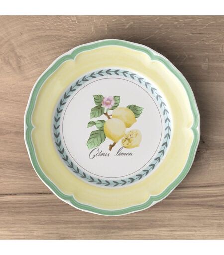 Avec ses éléments champêtres traditionnels aux couleurs chaleureuses, French Garden crée un somptueux jardin fruitier sur la table. Ses différents décors estivaux à la beauté intemporelle se combinent à merveille ensemble. Qu?il s?agisse de croissants chauds ou de fruits frais, disposées sur cette assiette à dessert, les gourmandises du matin n?en seront que meilleures. Faites plaisir à ceux que vous appréciez dès le matin avec une vaisselle particulièrement élégante. ...