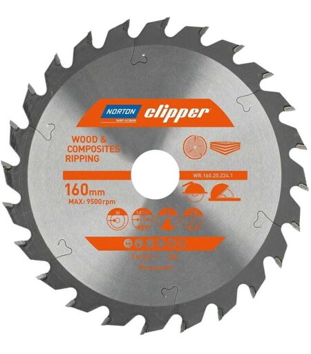 Norton - scie circulaire 160mm x 20mm x 24z bois et composites atb (1.8 / 1.2)
