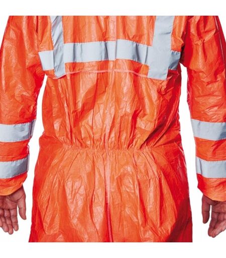 Combinaison de protection TYVEK® 500 haute visibilité Combinaison de protection TYVEK® 500 haute visibilité Caractéristiques : Barrière de protection conforme aux vêtements de protection de catégorie III, type 5 et 6 offre une protection chimique, biologique et antistatique peut remplacer ou protéger les vêtements haute visibilité réutilisables conception ergonomique idéal pour le travail dans des secteurs tels que les chemins de fer, la construction et l'entretien des routes, les travaux souterrains, les ports et les aéroports, l'exploitation minière ou la gestion des déchets où des exigences élevées en matière de haute visibilité sont requises pour assurer la sécurité des travailleurs est conforme à la classe de haute visibilité la plus élevée (norme EN 20471 Classe 3/3) répond aux exigences des normes EN13982, EN13034, EN20471, EN1149-5, EN14126 et EN1073-2 Données techniques : DUPONT TYVEK-500HV P Couleur : orange Taille : M Normes : EN1149-5, EN13034, EN13982, EN14126, EN20471 ...