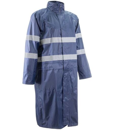 L’ imperméable de travail Coverguard Rainet Coat est idéal pour se protéger de l’eau, du vent et de l’humidité sans renoncer à la liberté de mouvement ; il mesure 120 cm de long afin de couvrir le travailleur jusqu'aux genoux. Le Coverguard Rainet Coat est fabriqué avec soin et précision en tissu 100 % polyester flexible enduit de PVC, 200 g/m² , avec des coutures étanches. Il est équipé d’une capuche fixe intégrée dans le col avec une fermeture éclair et un cordon de serrage, un col montant, une fermeture éclair centrale sous un rabat avec bouton-pression, des manches raglan, des poignets élastiqués, 2 poches avant à rabat, des œillets de ventilation sous les aisselles qui assurent une circulation d’air constante, ainsi que des bandes réfléchissantes horizontales cousues dans le dos et sur les manches. ...