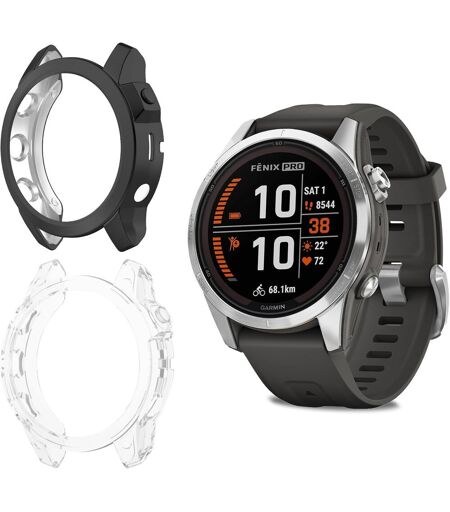 Étui 2 Pièces Pour Garmin Fenix 7s Pro Solar - Coque Tpu Souple Ultra-Fine Anti-Chocs Et Anti-Rayures, Protection Complète Bords Et Écran, Noir + Transparent, Installation Facile