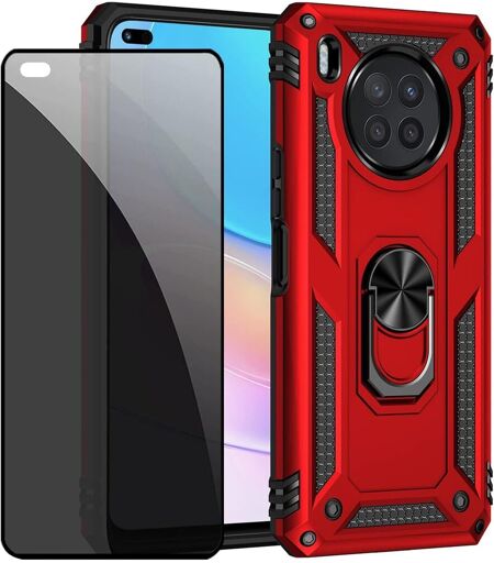 Coque Pour Huawei Nova 8i / Honor 50 Lite Rouge - Pack Antichoc Tpu Souple + Verre Trempé Confidentialité Anti¿Espion, Anneau Support 360° Compatible Support Magnétique