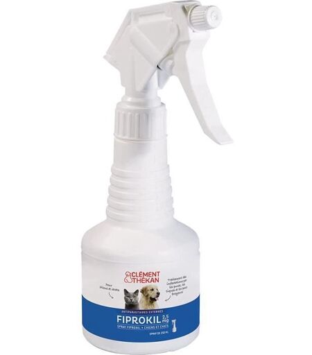 COLLIER ANTIPARASITAIRE Clément Thékan Fiprokil 2,5 mg SPRAY FIPRONIL CHATS CHIENS Antipucesantitiquesantipoux broyeurs Chats et Chiens 250 mL Traite les chats et les chiens contre les puces, les tiques et les poux broyeurs ...