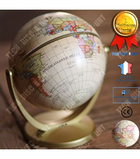 Matériau: plastique Taille: 12 * 12 * 15cm -[Présentation du produit] Il s?agit d?un globe terrestre, adapté au stage d?étude, à l?éducation scientifique, pratique et esthétique, qui consiste à offrir aux enfants, aux étudiants la connaissance du monde. Carte jaune foncé avec lettres anglaises, style rétro nostalgique -[Belle texture] texte clair joliment imprimé, excellente finition -[Rotation]le globe peut être tourné à gauche et à droite, peut également basculer de haut en bas, facile à lire et à parcourir -[Entreprise et marque française Tech Discount®]: Notre entreprise Tech Discount® fabrique et vend ce produit globe terrestre de qualité supérieure par rapport aux produits de même type sur le marché (Même si les photos sont similaires, ils ne sont pas conçus de la même façon et les vendeurs n?offrent pas les mêmes services après-vente). Chaque produit subit un contrôle strict avant son expédition qui vous permettra de recevoir votre produit en excellent état, en cas de problème de qualité, échange gratuit sous 14 jours. Expédié depuis la France le jour même de la commande et vous la recevrez dans les meilleurs délais (contrairement aux autres vendeurs qui ne peuvent pas garantir le temps d'expédition ou qui expédient depuis l'étranger qui risque d'avoir un service après vente insuffisant). Notre service après vente se tiendra à votre écoute pour vous répondre efficacement. --[A l?attention des autres vendeurs]: Ce produit est vendu exclusivement sous notre marque française Tech Discount®. Il est interdit d'ajouter cette offre dans votre compte. Nous avons le certificat d?enregistrement de marque INPI ainsi que le brevet. Toutes les ventes de contrefaçon entraîneront l?ouverture d?une enquête ainsi qu?une poursuite en justice. Merci de votre compréhension. ...