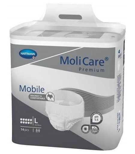 MoliCare® Premium Mobile 10 gouttes est un change mobile pour adulte à absorption maximale, parfaitement adapté aux situations d'incontinence maximale. Il combine performance, confort et simplicité d'utilisation pour vous permettre de rester actif et serein au quotidien. Se portant comme un sous-vêtement classique, ce change mobile pour adulte est conçu pour absorber efficacement de grandes quantités de liquide tout en maintenant la peau au sec. Grâce à son noyau absorbant à pH neutre, il contribue à préserver l'équilibre cutané et limite les irritations. Ces changes mobiles pour adultes sont dotés de barrières antifuites latérales, d'un textile respirant et d'un ajustement ergonomique pour une protection fiable et confortable, de jour comme de nuit. Sa structure douce et extensible permet un port agréable, même pendant les mouvements. Les coutures latérales pré-découpées assurent un retrait facile. Ces slips absorbants pour adultes sont idéals pour les personnes recherchant une protection renforcée sans compromis sur le confort. Caractéristiques principales : Ultra-absorbant : conçu pour gérer les volumes d'urine les plus importants Triple coussin absorbant : protection contre l'humidité, les fuites et les odeurs Matière respirante : favorise la santé de la peau Forme anatomique : maintien parfait et discrétion assurée Retrait pratique : coutures latérales faciles à ouvrir Indicateur d'humidité : signale le moment optimal pour le changement Testé dermatologiquement : respect des peaux sensibles Les culottes d'incontinence pour adultes MoliCare® 10 gouttes assurent une tranquillité absolue, même dans les situations les plus exigeantes. Guide des tailles et absorption : Tour de hanches Absorption HARTMANN MOLICARE MOBILE 10 GOUTTES MEDIUM 80 à 120 cm 2626 ml HARTMANN MOLICARE MOBILE 10 GOUTTES LARGE 100 à 150 cm 2631 ml HARTMANN MOLICARE MOBILE 10 GOUTTES EXTRA LARGE 130 à 170 cm 2757 ml Autres absorptions disponibles dans la gamme Hartmann MoliCare® Mobile : MoliCare Premium Mobile 5 gouttes Tour de hanches Absorption SMALL 60 à 90 cm 941 ml MEDIUM 80 à 120 cm 1017 ml LARGE 100 à 150 cm 1198 ml EXTRA LARGE 130 à 170 cm 1183 ml MoliCare Premium Mobile 6 gouttes Tour de hanches Absorption EXTRA SMALL 45 à 70 cm 1361 ml SMALL 60 à 90 cm 1475 ml MEDIUM 80 à 120 cm 1662 ml LARGE 100 à 150 cm 1963 ml EXTRA LARGE 130 à 170 cm 2140 ml MoliCare Premium Mobile 8 gouttes Tour de hanches Absorption SMALL 60 à 90 cm 1791 ml MEDIUM 80 à 120 cm 2015 ml LARGE 100 à 150 cm 2279 ml EXTRA LARGE 130 à 170 cm 2421 ml Commandez dès maintenant MoliCare Premium Mobile 10 gouttes sur Senup.com et bénéficiez de la solution la plus absorbante de la gamme, avec un confort longue durée et une livraison rapide. ...