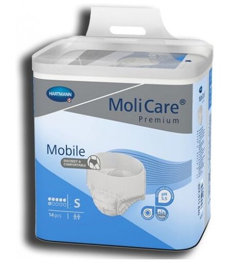 Hartmann MoliCare Premium Mobile 6 gouttes Slip absorbant pour incontinence urinaire et fécale forte. Idéal pour les personnes mobiles, il s'enfile tel un sous-vêtement classique. Il intègre une couche Dry-Plus constituée de polymères ultra absorbants ainsi qu'une surface supérieure en textile aéré. Le Molicare Mobile est très efficace pour éviter les fuites grâce à ses barrières latérales hydrophobes et ses élastiques placés au niveau de l'entrejambe. La gamme Molicare Mobile correspond à la gamme Hartmann Confiance. Caractéristiques: Forme anatomique Très souple grâce aux élastiques Les liquides sont rapidement capturés Neutralisateur d'odeurs Barrières anti-fuites pour un maximum de sécurité Les coutures latérales se déchirent Doux et respirant Très discret. MoliCare Premium Mobile 5 gouttes Tour de hanches Absorption Conditionnement SMALL 60 à 90 cm 941 ml 14 pièces MEDIUM 80 à 120 cm 1017 ml 14 pièces LARGE 100 à 150 cm 1198 ml 14 pièces EXTRA LARGE 130 à 170 cm 1183 ml 14 pièces MoliCare Premium Mobile 6 gouttes Tour de hanches Absorption Conditionnement EXTRA SMALL 45 à 70 cm 1361 ml 14 pièces SMALL 60 à 90 cm 1475 ml 14 pièces MEDIUM 80 à 120 cm 1662 ml 14 pièces LARGE 100 à 150 cm 1963 ml 14 pièces EXTRA LARGE 130 à 170 cm 2140 ml 14 pièces MoliCare Premium Mobile 8 gouttes Tour de hanches Absorption Conditionnement SMALL 60 à 90 cm 1791 ml 14 pièces MEDIUM 80 à 120 cm 2015 ml 14 pièces LARGE 100 à 150 cm 2279 ml 14 pièces EXTRA LARGE 130 à 170 cm 2421 ml 14 pièces MoliCare Premium Mobile 10 gouttes Tour de hanches Absorption Conditionnement MEDIUM 80 à 120 cm 2626 ml 14 pièces LARGE 100 à 150 cm 2631 ml 14 pièces EXTRA LARGE 130 à 170 cm 2757 ml 14 pièces ...