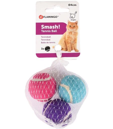 Flamingo Pet Products Jouet Pour Chat, 3 Balles (Forme De Tennis) Multicolore ? 4 Cm + Clochette