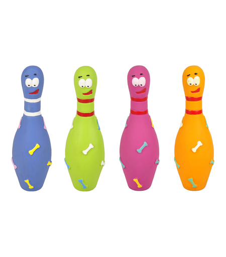FLAMINGO-Jouet Chien - Flamingo Quille de bowling latex x1 - 6,5 x 20 cm - coloris aléatoire