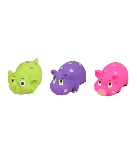 Adorable, amusant et résistant, cet animal en latex coloré fera le plus grand bonheur de votre chien. Très rigolo, à la forme d'éléphant, d'hippopotame ou de cochon, le jouet émet un couinement qui suscitera vivement l'intérêt de votre animal de compagnie pendant ses parties de jeu. Favorisant le bon développement de la mâchoire, le jouet en latex à couinement stimule l'attention du chien en aidant à lutter contre le stress et l'ennui. La taille de ce jouet est idéale pour tous, petits et grands. Quel que soit son âge, votre chien appréciera de cacher, enterrer, promener ou simplement faire couiner son jouet. Produit vendu à l'unité, livré aléatoirement parmi un assortiment de coloris (hippopotame violet, éléphant vert ou cochon rose). ...