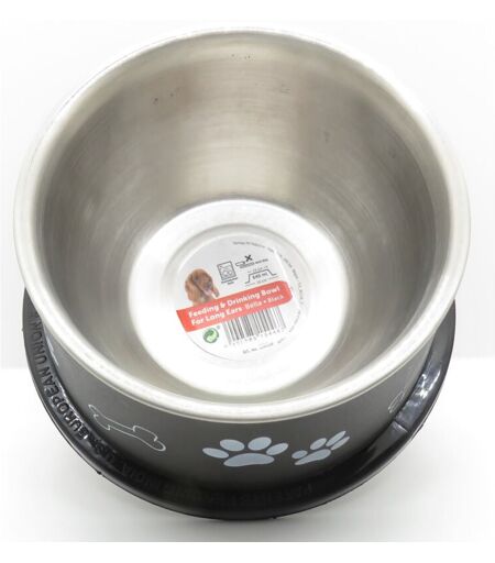 Ecuelle Kena . pour chien à oreilles longues . dimension: ø13 cm. contenance 640 ml. hauteur: 8 cm. en inox. antidérapant. couleur noir. avec motif pattes et os. Ecuelle Kena . pour chien à oreilles longues . dimension: ø13 cm. contenance 640 ml. hauteur: 8 cm. en inox. antidérapant. couleur noir. avec motif pattes et os. ...