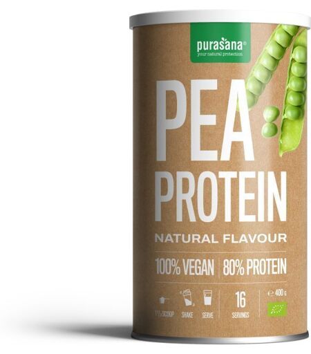 Il est important d'avoir une alimentation variée et équilibrée et un mode de vie sain.La poudre de protéines de pois de Purasana est fabriquée à partir d'isolat de protéines de pois pur (80%) provenant de pois. C'est un excellent substitut aux sources de protéines animales telles que les protéines de lactosérum et convient donc à tous ceux qui recherchent des protéines végétales. Il a un profil très concentré d’acides aminés et est 100% végétal et convient donc aux végans. En outre, la poudre de protéines de pois de Purasana est également idéale pour les personnes allergiques au soja, au gluten ou au lactose.La protéine de pois facilement digestible à la saveur neutre vous permet de préparer de délicieux shakes et d'ajouter votre propre saveur. Par exemple, mélangez-la avec des fruits surgelés pour obtenir une texture lisse ou encore plus onctueuse.Très concentré Isolat de protéine de pois végétalContient 80% de protéinesArôme neutreComposition:100% poudre de protéine de pois biologiquePar portion moyenne= 26.67 g de protéine* Agriculture biologiqueValeur nutritionnelle: Pour 100 gValeur énergétique1610 kJ /380 kcalMatières grassesdont acides gras saturésdont acides gras monoinsaturésdont acides gras polyinsaturés5,4 g1,1 g1,2 g2,8 gGlucides dont sucres4,8 g0,1 gFibres alimentaires0,1 gProtéines80 gSel3 gAlanine3,27 g Arginine6,15 g Acide Aspartique8,55 g Cystine1,02 g acide Glutamique12 g Glycine2,81 g Histidine1,54 g Isoleucine3,8 g Leucine6,58 g Lysine6,32 g Methionine2,5 g Phenylalanine3,98 g Proline2,66 g Serine6,47 g Threonine2,67 g Tryptophane0,57 g Tyrosine0,06 g Conseil d'utilisation:Mélangez 1,5 doseur (30-35 g) de poudre de protéine de pois de Purasana dans un shaker ou un mélangeur avec 300-350 ml de boisson à base de riz ou de soja. Secouez pendant 15 secondes et buvez immédiatement. Peut également être utilisé pour enrichir les céréales, le muesli, le pain, les pâtisseries, la farine ou la chapelure.Préacautions d'emploi:Conserver au frais, au sec et à l’abri de la lumière.Poids net:400 gFabricant:Purasana NVHeulestraat 104 8560 GullegemBelgique ...