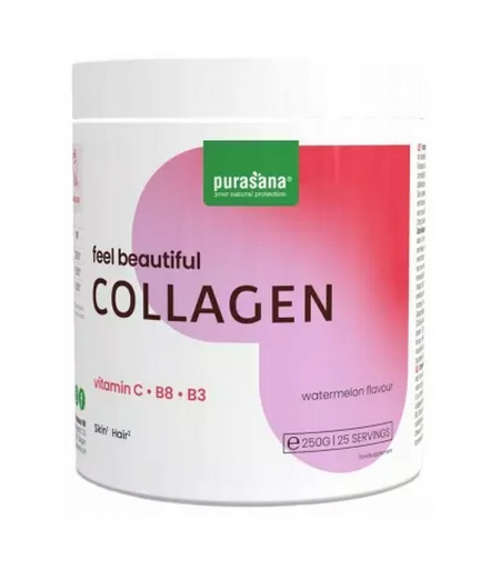 Parapharmacie > Compléments alimentaires > Compléments Alimentaires Pour Cheveux, peau et ongles > Compléments alimentaires Peau Purasana Feel Beautiful Collagène Poudre Saveur Pastèque 250 g