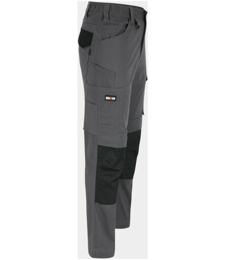 Pantalon de travail HEROCK - Qualité professionnelle - Modèle Gris et Noir DERO CORPS Pantalon multi-poches, extensible dans les deux sens 1 boucle de ceinture avec porte-clés 2 poches latérales 1 poche GSM 2 poches sur les cuisses 1 poche mètre 2 poches pour stylos 2 poches arrière Poches genouillères Ourlet à rallonge EN ISO 13688:2013 EN ISO 14404:2004+A1:2010 Type 2 Level 0 en combinaison avec la protection du genou HEROCK® 21MI0901 COMPOSITION Tissu principal: Toile 98 % coton 2 % élasthanne 275 g/m² Tissu de renforcement: 100% polyester oxford 600D avec un revêtement de surface déperlant ...