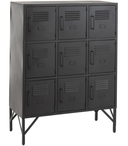 HELLIN Buffet industriel 9 portes 86x41x113,5 cm en métal noir
