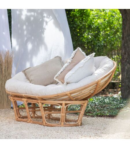 Hellin - Fauteuil 179x155x36 cm en rotin naturel avec coussin blanc