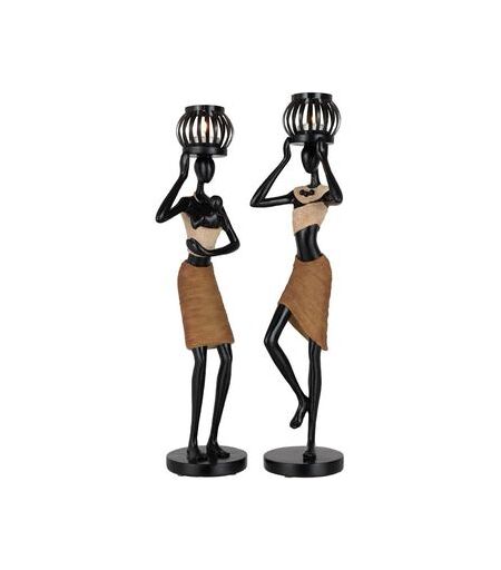 Bougeoirs, photophores Jolipa Set de 2 photophores figurines Africaines Marron