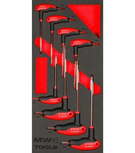 Mw Tools - Jeu de clés allen avec manche-T 2-8 mm 8 pièces module en mousse pour servante d'atelier MWTHEX8