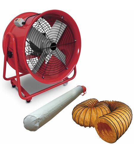 DESCRIPTION: Ensemble composé d'un ventilateur MV500R + tuyau MV500SL + sac filtrant MV500FZ. MV500R Ventilateur mobile 1100 W Pour séchage, ventilation, refroidissement, évacuation d'air Évacuation des fumées de soudage, gaz, odeurs Pour amener de l'air frais dans des espaces de travail pauvres en oxygène comme les caves, bateaux, containers Peut fonctionner à 60 Hz Haut débit MV500SL Tuyau d'arrivée ou d'évacuation de 10 m Nylon non inflammable, aussi utilisable lors des travaux de soudage ou d'affûtage Plusieurs tuyaux peuvent être raccordés ensemble Livré avec des oeillets en acier pour pouvoir le suspendre, par exemple en cas de manque de place, dans des espaces étroits ou dans des conditions humides (égouts, fosses de construction, etc.) MV500FZ Sac filtrant pour ventilateurs mobiles avec raccord ø 500 mm Ce filtre capte toutes les particules nocives comme le quartz pendant les travaux de ponçage et de démolition Grâce à la large surface du filtre, le ventilateur conserve son ...