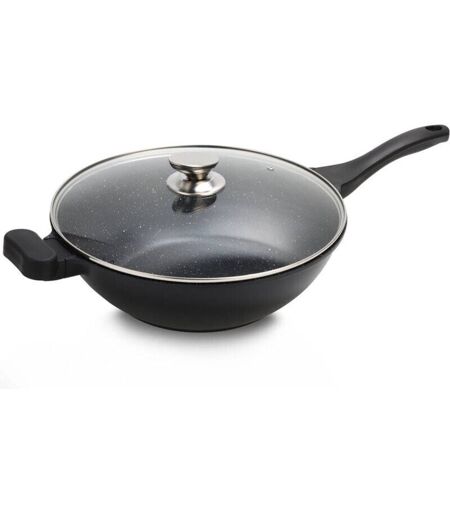 Royalty Line - Wok avec couvercle - Revêtement effet Marbre - d 32 cm - Noir - Livraison gratuite