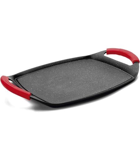 Plaque de gril / Plancha 36 cm - Fonte antiadhésive Greblon Cette plaque de gril / plancha de 36 cm est parfaite pour des cuissons saines, savoureuses et homogènes. Conçue en fonte robuste avec un revêtement en marbre Greblon, elle offre une surface antiadhésive durable qui facilite le nettoyage tout en réduisant l'utilisation de matières grasses. Elle est équipée de deux poignées en silicone ergonomiques, garantissant une prise en main confortable et une manipulation sécurisée, même à haute température. Sa grande polyvalence est renforcée par sa compatibilité avec tous types de feux : gaz, électrique, céramique, halogène, induction, ainsi qu'avec le four, offrant une flexibilité maximale pour réaliser une variété de plats. Que ce soit pour griller viandes, poissons ou légumes, cette plancha allie fonctionnalité et qualité. Élégante et robuste, elle est conçue pour répondre aux besoins des amateurs de cuisine conviviale et saine, tout en garantissant une expérience culinaire ...