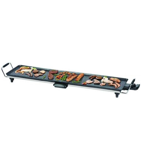 Grille électrique 1800W - Surface antiadhésive avec points blancs Cette grille électrique de 1800W est conçue pour offrir des cuissons rapides et homogènes. Fonctionnant sous une tension de 220-240V avec une fréquence de 50/60Hz, elle dispose d'une large surface de cuisson de 88x23 cm, idéale pour préparer plusieurs portions simultanément. Son système drainable à l'huile permet de collecter l'excédent de graisse, assurant une cuisson plus saine tout en réduisant les résidus sur la surface. Dotée d'un revêtement antiadhésif avec des points blancs, elle garantit un nettoyage facile et une cuisson sans accroche, que ce soit pour griller viandes, légumes ou poissons. Robuste et élégante, cette grille électrique est un choix parfait pour ceux qui souhaitent allier praticité, performance et style en cuisine. Un excellent ajout pour des repas conviviaux et savoureux à partager ! ...