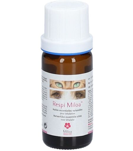 Respi Miloa TM est une synergie d’huiles essentielles naturelles pour inhalation. Ces huiles essentielles sont reconnues pour leurs nombreuses vertus. Respi Miloa TM permet une respiration optimale. Il est à utiliser pour dégager les voies respiratoires.IndicationContient de l’alcool. Tenir hors de portée des enfants. Tenir loin des flammes. Ne pas pulvériser dans les yeux. Usage externe. À utiliser dans les 36 mois après la date de fabrication.ApplicationMettre 3 à 4 gouttes dans l’eau chaude pour que l’animal inhale les vapeurs. Répéter 2 à 3 fois par jour pendant 3 à 5 jours. Respectez les conseils de votre vétérinaire.IngrédientsAlcool.Huiles essentielles naturelles :Eucalyptus globulus, Rosmarinus officinalis, Citrus sinensis, Eucalyptus radiata, Thymus vulgaris linaloliferum, Melaleuca alternifolia, Melaleuca quinquenervia, Mentha piperita. ...