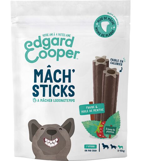 Bâtonnets Edgard & Cooper Mâch' Sticks menthe, fraise pour chien - pour les petits chiens (jusqu'à 10 kg, 7 sticks)