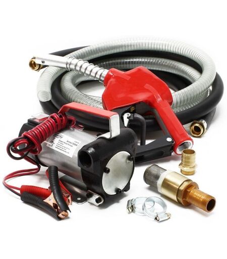 Contenu Pistolet robuste (Acier) avec tuyau de 4m Pompe à fuel Clapet anti-retour avec crépine d'aspiration . Tuyau d'aspiration de 2m 2 colliers de serrage 1 connecteur pour tuyau d'entrée ; Description Pompe à gasoil 12V avec tuyau et pistolet de pompage pour un service immédiat. La puissance du moteur est de 160W, la pompe atteint alors un débit de 2400l/h max. Grâce à son pistolet à blocage automatique, vous n'avez pas besoin de vous fatiguer à tenir le pistolet, lorsque vous remplissez votre réservoir et il s'arrêtera automatiquement lorsque le réservoir sera plein. Vous pourrez le brancher à la batterie de votre véhicule pour une utilisation aisée (ou n'importe quelle batterie) puisque ce modèle accepte une alimentation 12V Caractéristiques Techniques Puissance: 160W Alimentation: 12V Débit max: 40 l/min Hauteur d'aspiration maximum 5m Hauteur de sortie maximale 10m Poids: 9.3Kg ; Dimensions du carton: 47x30.5x24.5xcm Avec pistolet automatique, valve anti retour et crépine Attention, la pompe ne doit pas être utilisée plus de 20 minutes en continu, pour un refroidissement et fonctionnement optimal. Elle ne doit également pas être utilisée avec de l'essence ou autre liquides inflammables. En outre, avant utilisation, vous veillerez à étanchéifier les raccords à l'aide de téflon. ...