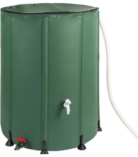 Description générale Le réservoir d'eau pliable est idéal pour collecter et stocker l'eau de pluie de manière écologique et économique, que ce soit à la maison, dans un petit jardin ou lors de vacances en camping. Fabriqué en PVC de haute qualité, renforcé par un tissu, il est résistant aux UV et à la corrosion, assurant une durabilité optimale. L'ouverture pour l'eau de pluie, ainsi que le robinet et le trop-plein, sont dotés de fermetures à crépine pour maintenir l'eau propre, sans feuilles ni insectes. Spécifications techniques Matériau : film PVC 500D renforcé par du tissu Couleur : Vert Dimensions (PxH) : environ Ø 60 x 70 cm Diamètre des barres : environ Ø 1,9 cm Diamètre du trou d'apport en eau : environ 15 cm Volume : 200 L Poids : 2.4 kg Dimensions du colis : 65 x 14 x 14 cm Compatibilité et accessoires Comprend un robinet de vidange avec raccord rapide pour tuyau d'arrosage Compatible avec d'autres réservoirs pour une installation en cascade Installation Montage facile et ...