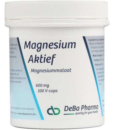 Complément alimentaire à utiliser dans le cadre d’une alimentation variée, équilibrée et d’un mode de vie sain.Magnésium Actif contient du malate de magnésium comme substance active. Le malate est le sel de l’acide malique et est naturellement largement présent dans les pommes et d’autres fruits, entre autres. L’acide malique est l’une des substances qui font partie du cycle de l'acide citrique et est par conséquent essentiel pour la formation d’ATP, la source d’énergie pour l’activité corporelle. Le magnésium est un minéral dont une grande partie est présente dans nos os et nos muscles. Le magnésium est tout comme le calcium un électrolyte. Les crampes musculaires sont une indication importante d’une carence en magnésium.Le magnésium contribue :à la diminution de la fatigue et de l'épuisementà un bon équilibre électrolytiqueà un métabolisme énergétique normalau fonctionnement normal du système nerveuxau fonctionnement normal des musclesà une synthèse normale des protéinesà une fonction psychologique normaleau maintien de dents et os sainsLe magnésium joue également un rôle dans le processus de division cellulaire.IngrédientsPar gélule végétale : malate de magnésium 600 mg dont magnésium élémentaire 90 mg (24 % AJR*) ; stabilisant : cellulose microcristalline ; agent d'enrobage : hydroxypropylméthylcellulose.* Apport journalier de référenceConseils d'utilisation1 à 5 gélules par jour, à prendre avec un peu d'eau.Précautions d'emploiConserver dans un endroit frais et sec.Tenir hors de portée des jeunes enfants.Ne pas dépasser la dose recommandée.Poids net100 gélulesAdresse du FabricantDeba PharmaDumolinlaan 13,8510 CourtraiBelgique ...