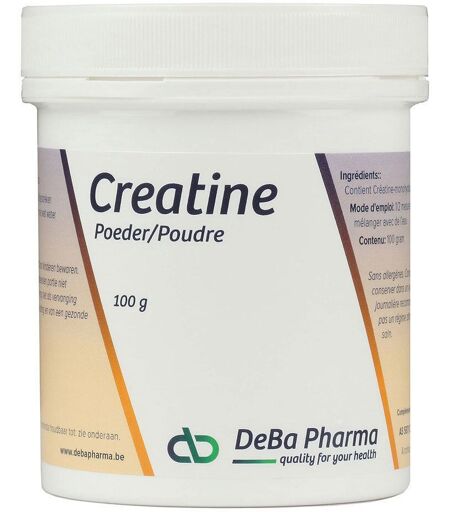 Complément alimentaire à utiliser dans le cadre d'une alimentation variée, équilibrée et d'un mode de vie sain.La créatine améliore les capacités physiques en cas de séries successives d'exercises très intenses de courte durée.Composition :Créatine monohydrate 100 % pureNe contient pas de conservateurs, de colorants ou d'arômes artificiels, de levure, de sucre, de lactose, de gluten, de maïs, de soja, de sel, d'amidon, de lait ou de blé.Conseils d'utilisation :1 mesurette (= 3g) (à diluer dans de l'eau) par jour, après le petit-déjeuner, ou les jours d'entraînement, ½ heure à 1 heure avant l'entraînement.Précautions d'emploi :Ne pas dépasser la dose journalière recommandée. Tenir hors de portée des enfants.Poids net :100 gFabricant :Deba PharmaDumolinlaan 13B-8500 KortrijkBelgique ...