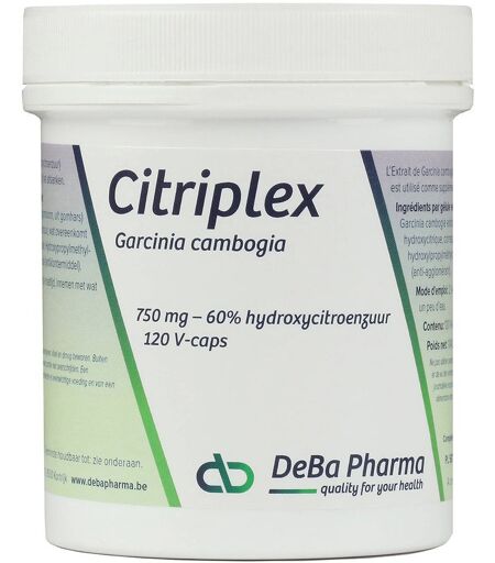 Complément alimentaire à utiliser dans le cadre d'une alimentation variée, équilibrée et d'un mode de vie sain.Citriplex contient l'extrait standardisé de la plante Garcinia Cambogia avec l'acide hydroxy-citrique comme substance active (HCA). HCA joue un rôle important dans le contrôle du poids corporel et l'appétit. Le fonctionnement du HCA empêche le foie dans la production de l'enzyme ATP-citrate-lyase, ce qui ajoute à une conversion réduite du sucre en triglycérides et une diminution de la production de graisses. Pour cette raison Citriplex permet la stimulation de la réduction du poids et la réduction du nombre des cellules adipeuses. HCA a également une influence sur l'augmentation des niveaux de sérotonine, ce qui entraîne la diminution de la faim et de la frénésie alimentaire.IngrédientsExtrait de Garcinia cambogia 750 mg (guutegomboom, de la gomme-résine) (normalisée à 60% hyroxy-acide correspond à 450 mg d'acide hydroxycitrique par gélule), hydroxy-propyl méthyl cellulose (V-caps enveloppe), le dioxyde de silicium (agent antimottant).Conseils d'utilisations2 à 4 capsules par jour, 1-2 heure avant le repas, prendre avec un peu d'eau.Précautions d'emploiTenir hors de portée des enfants.Ne pas dépasser les doses journalières recommandées.Poids net120 gélulesFabricantDEBA PHARMADumonlinlaan 13 8500 CourtraiBelgique ...
