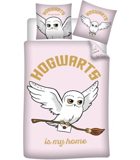 AYMAX Parure de lit réversible Harry Potter - Hedwige la Chouette - -Hogwarts is my home- - Rose - 140 cm x 200 cm