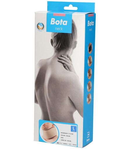 Collier cervical Bota ► Modèle C ► Taille L : 43-48 cm ► Couleur : Skin ► Exécution : H 6-7-8-9-10-12 cm Bénéfices Soutien extra (menton) Forme anatomique Mousse recouverte de coton doux, confortable et doux pour la peau Fermeture velchro réglable Conseils d'utilisation Lire attentivement le mode d'emploi Indications Arthrose cervicale Cervico-brachialgie Post-traumatique Whiplash (coup du lapin) Postopératoire Conditionnement 1 pièce ...