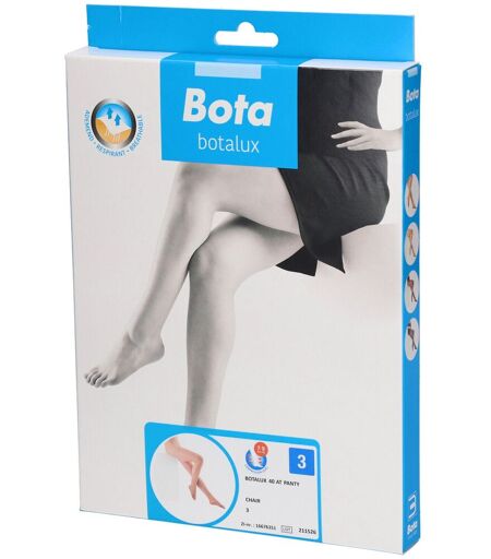 Botalux 40 Bas de soutien 40 denier (7/9 mm Hg) Panty de soutien “AT+P” Indications Jambes fatiguées/lourdes Composition 81% PA, 19% EL Conditionnement 1 collant ...